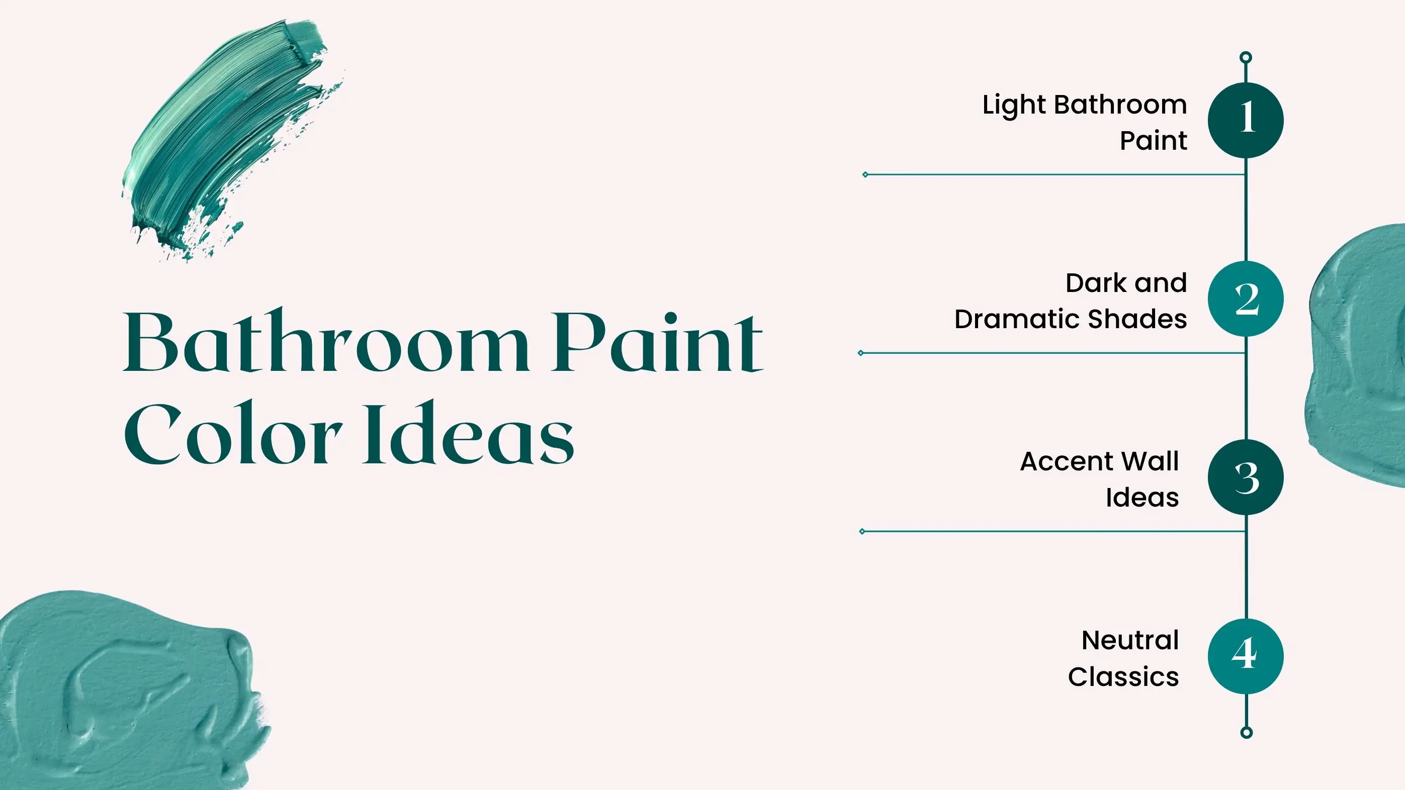 Your bathroom’s color scheme can completely transform its mood and visual impact. The right palette enhances natural light, complements fixtures, and creates the atmosphere you want be it calming, luxurious, or energizing. Light tones expand small spaces, dark hues add sophistication, and accent walls bring depth and personality. Below are color categories with their unique pros, cons, and best-use recommendations for every type of bathroom.