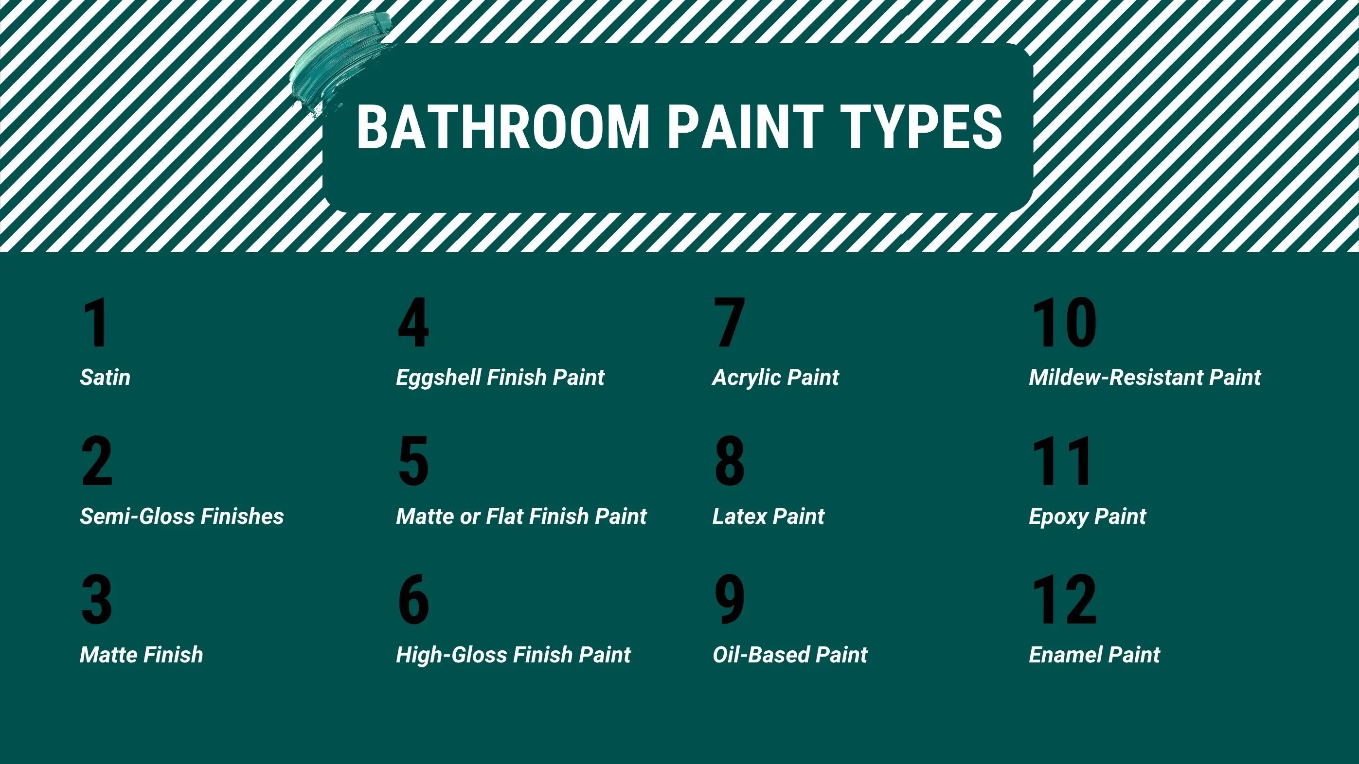 Acrylic paints are water-based and known for their quick-drying, durable nature. They resist peeling, cracking, and mildew, making them excellent for high-humidity bathrooms. Most modern bathroom paints are acrylic-based for superior performance.