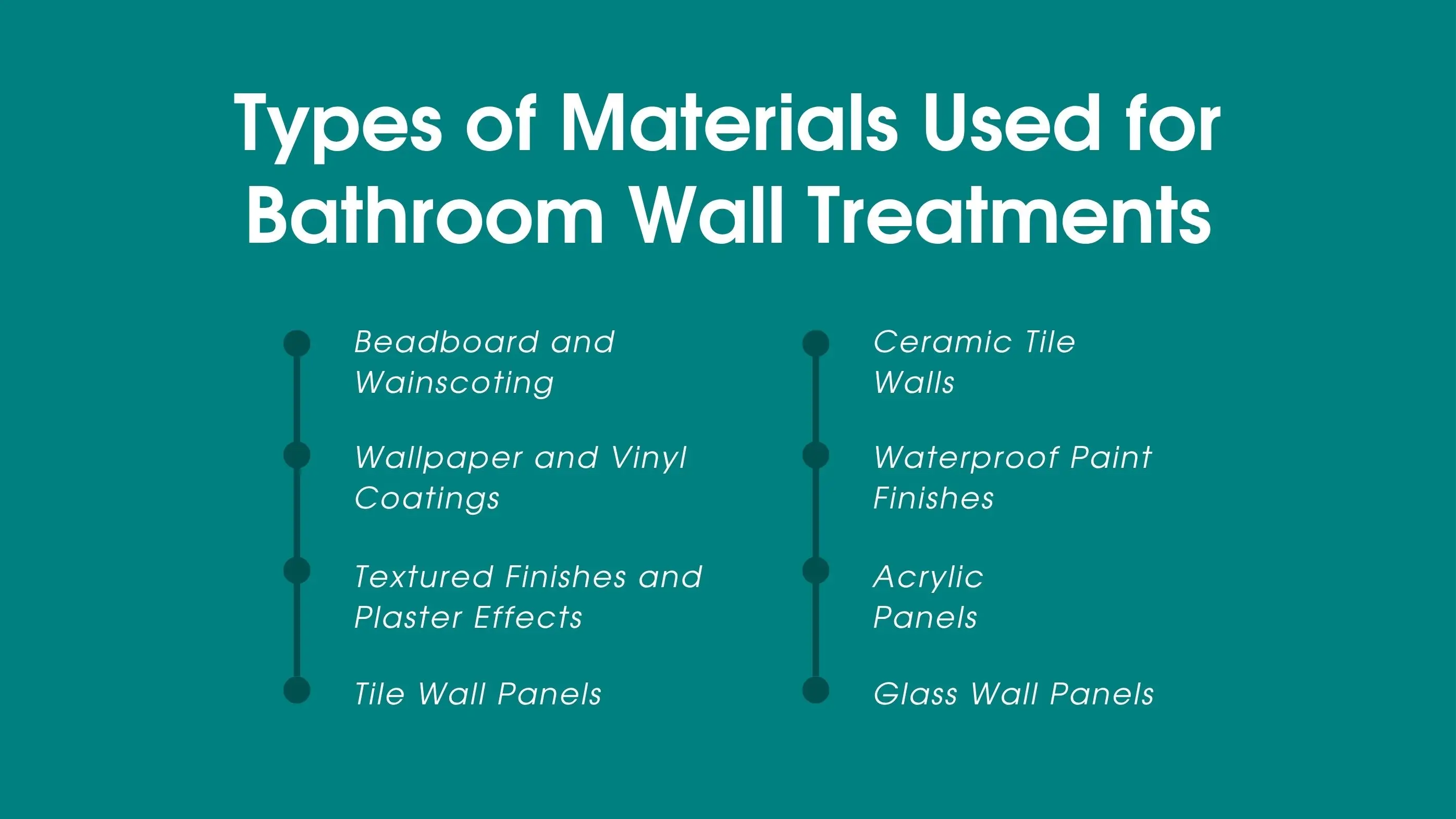 The best wall treatments provide a balance of aesthetics and function, helping your bathroom stay clean, dry, and visually appealing for years. Each option varies in texture, maintenance, and level of water resistance, giving you the flexibility to design a space that fits your needs and style.