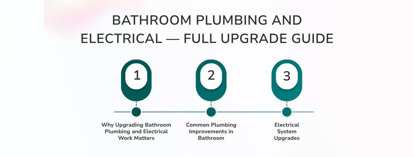 Bathroom plumbing and electrical upgrades might not be the most visible part of your remodel, but they’re what make everything function perfectly. Whether you’re installing a new shower or redesigning your entire space, a solid plumbing and electrical foundation ensures safety, comfort, and peace of mind for years to come.