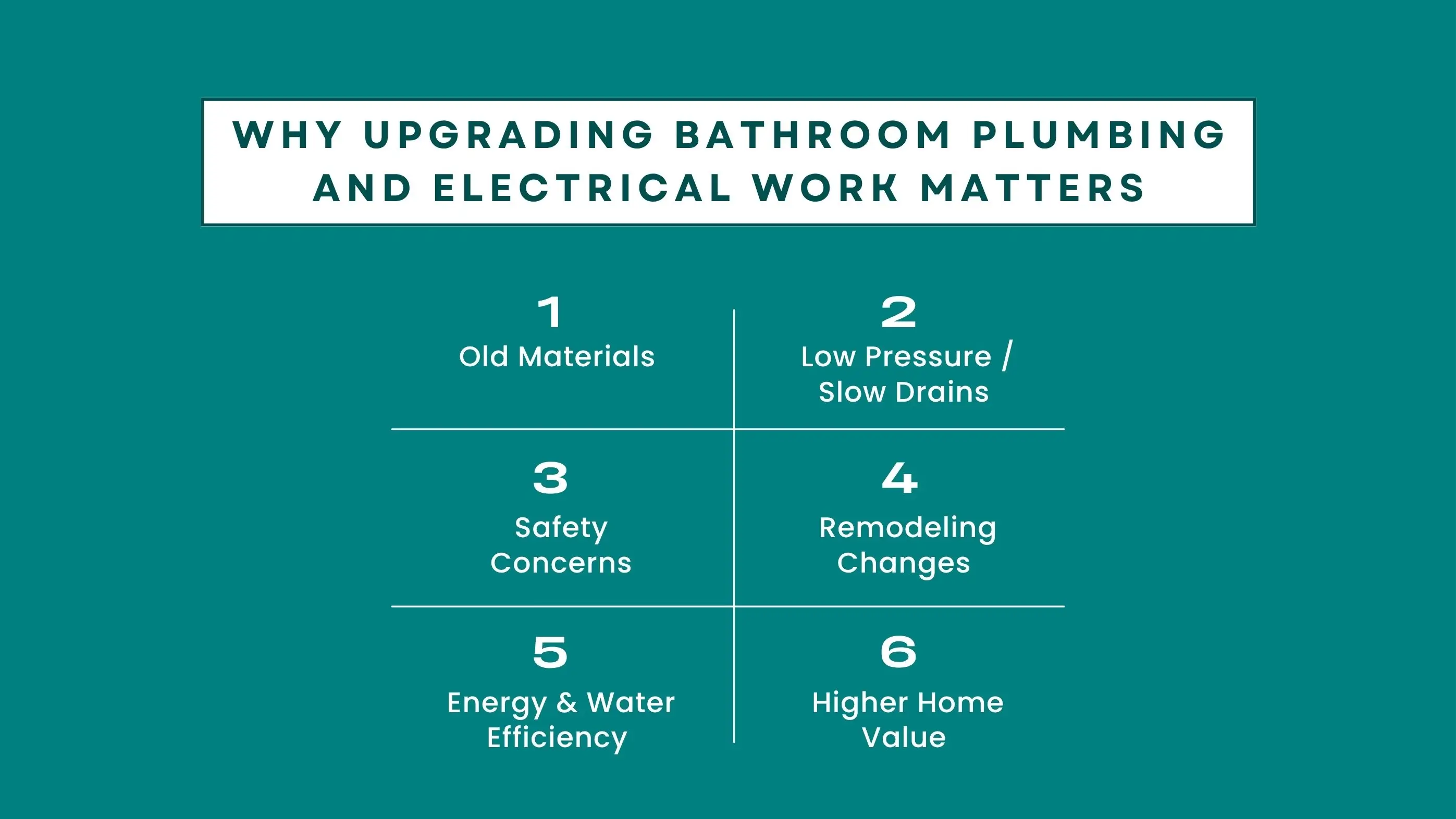 Even if your bathroom looks fine on the surface, the hidden systems behind the walls tell a different story. Old pipes, worn-out wiring, and outdated layouts can quietly cause leaks, low pressure, or electrical risks. Upgrading brings your bathroom up to modern safety and performance standards while also improving comfort and efficiency. Here are some reasons for upgrading: