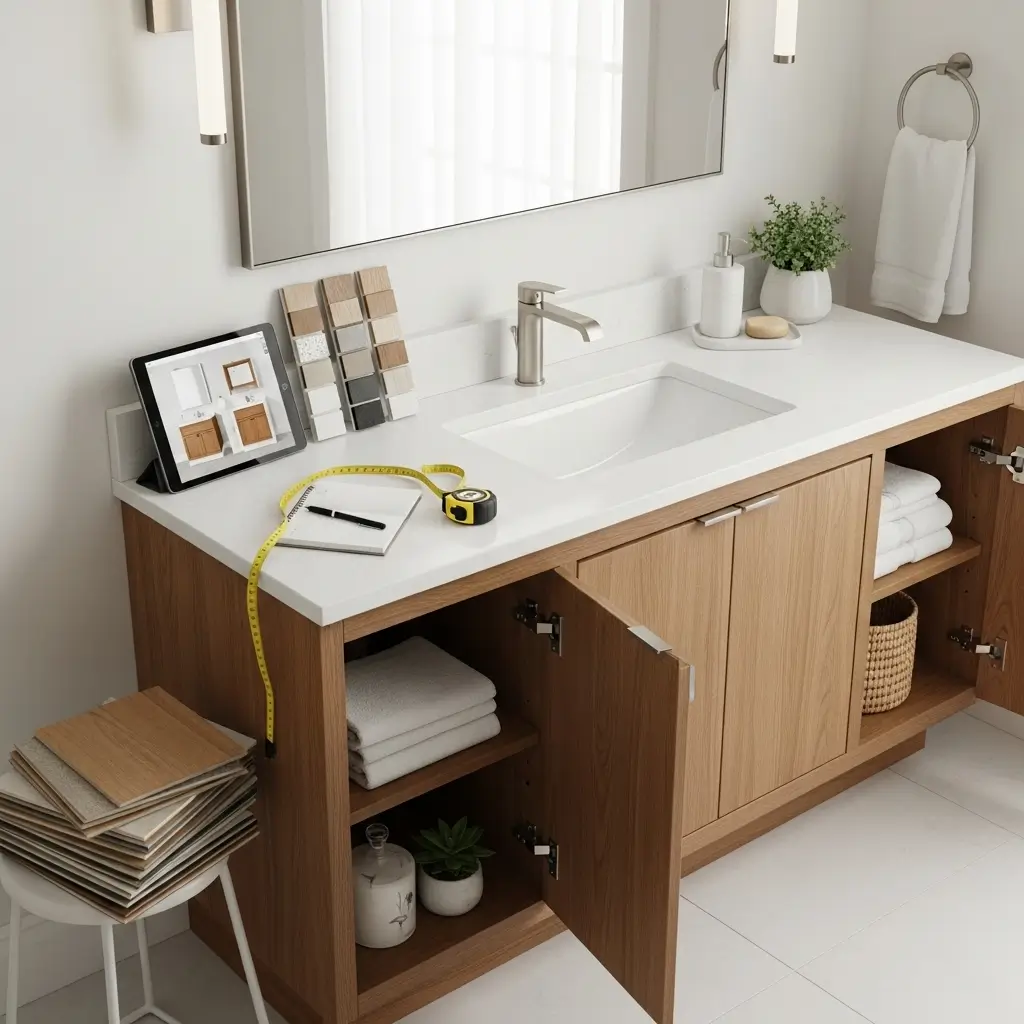 | Solid Wood (Maple, Oak, Cherry) | Durable, natural grain, can be stained or painted | High-end custom vanities |