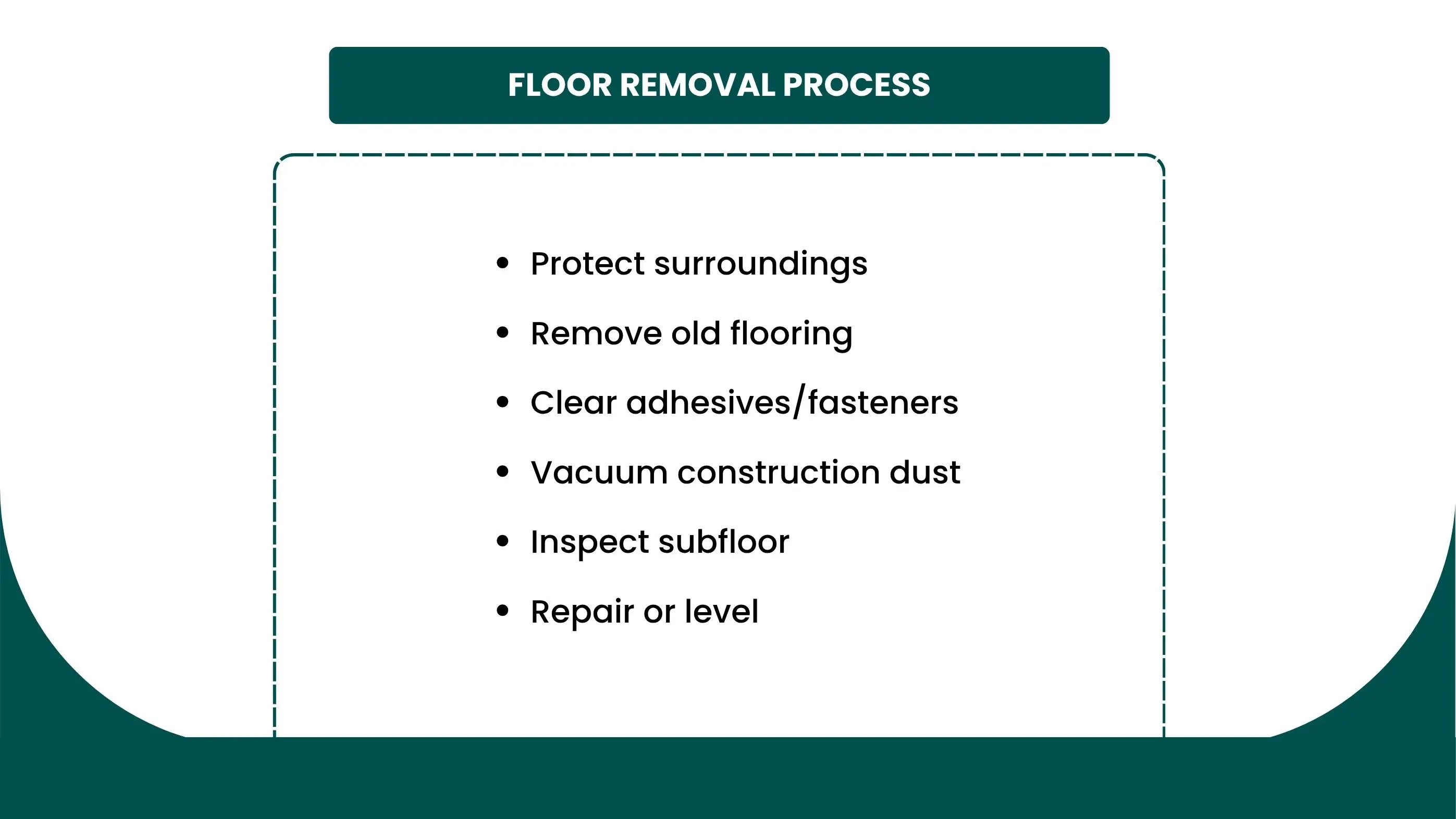 Identifying and fixing these problems now ensures no structural issues remain hidden beneath the new flooring. This is one of the most important steps for long-term durability.