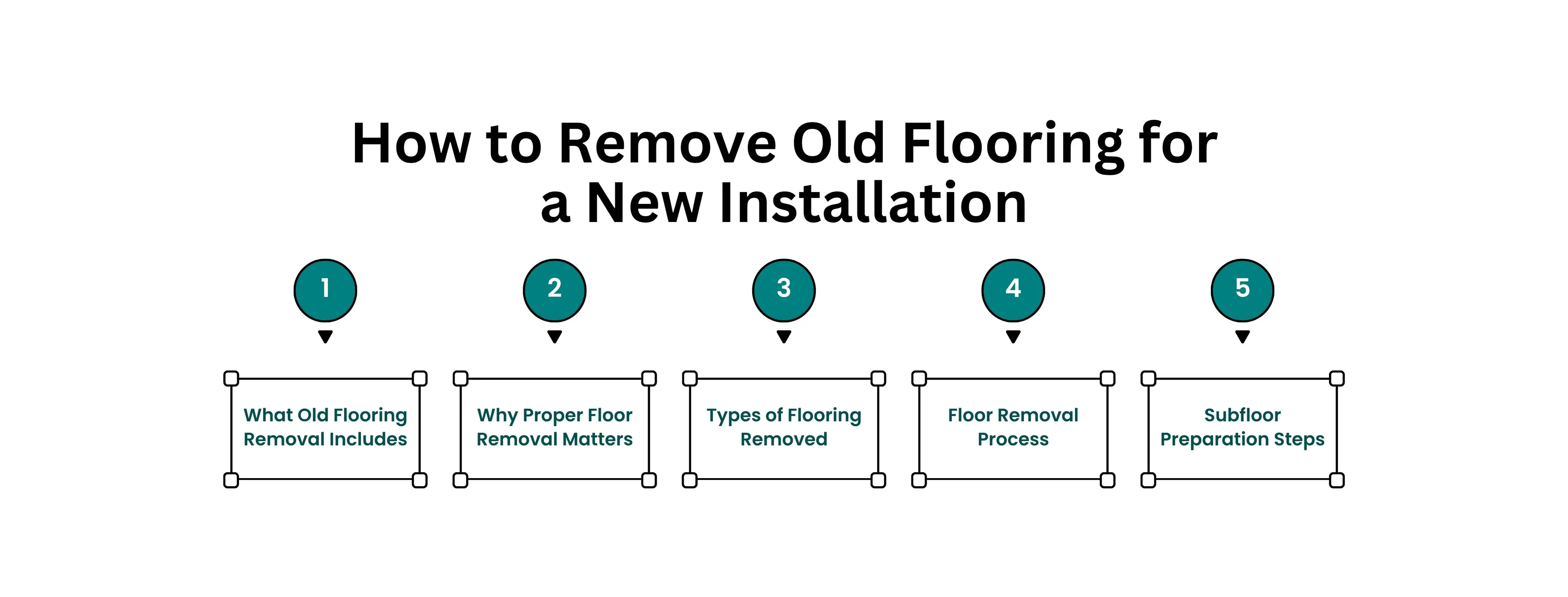 Removing old flooring is the first and most important step when preparing for a new installation. It involves safely taking up existing materials, handling debris disposal, and repairing or leveling the subfloor to meet the requirements of your new floor type.