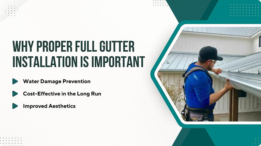 Proper gutter installation plays a crucial role in protecting your home from water damage. Gutters channel rainwater away from the foundation, preventing water from pooling and causing erosion or flooding in your basement. Without gutters, water can seep into the walls, leading to expensive repairs.