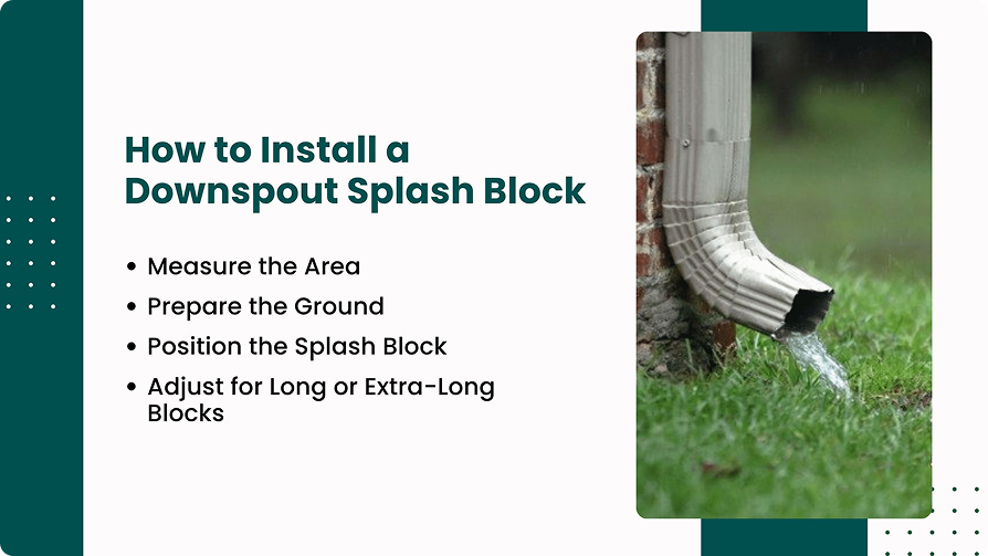 Check the distance from your downspout to where the splash block will sit. Correct placement ensures water flows away from the foundation, preventing pooling or soil erosion near your home.