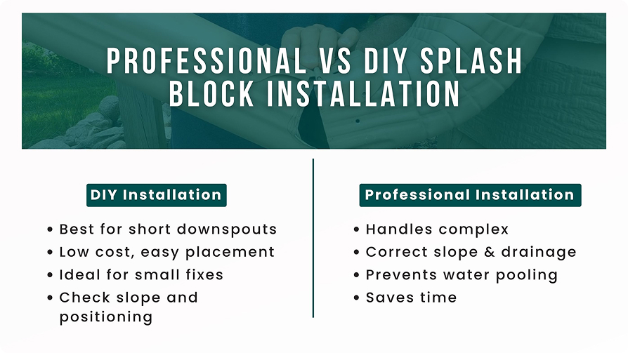 Installing splash blocks yourself is often simple for standard blocks and short downspouts. With a little care, you can effectively divert water away from your foundation and prevent erosion. This approach saves money, but proper placement and leveling are important to avoid water pooling near your home.