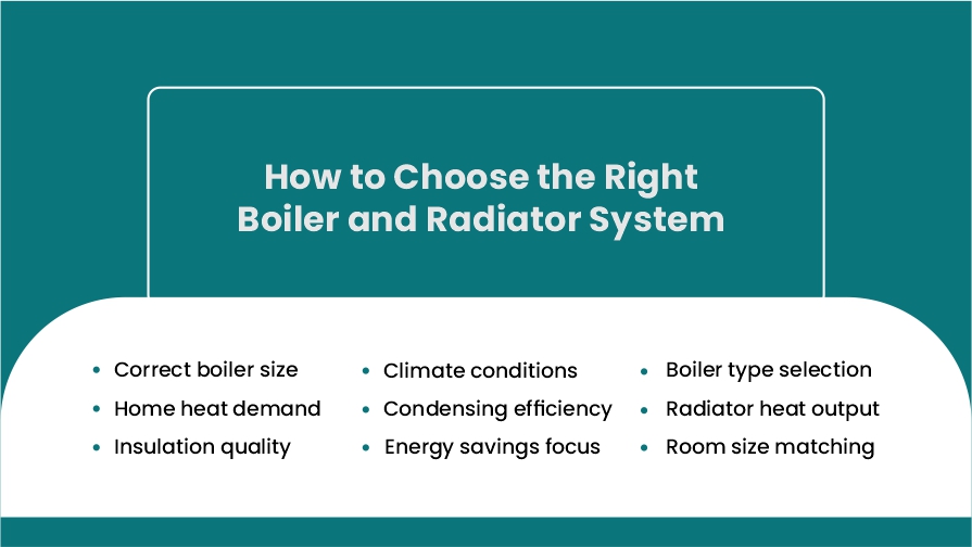 Choosing the right boiler and radiator system is about matching the system to your home’s size, layout, and heating demands. The right choice improves comfort, energy efficiency, and system lifespan, while the wrong one can lead to uneven heating and higher running costs. Below are the key factors that help determine the best option for your home.