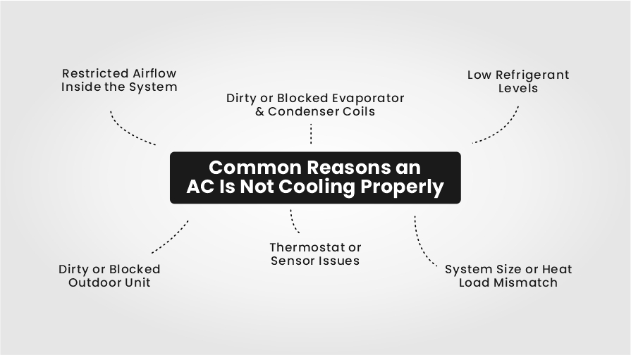 Airflow problems are one of the most frequent reasons an AC does not cool properly. When air cannot move freely through the system, the cooling process becomes inefficient. Even a small restriction can reduce cooling output enough to make indoor temperatures feel uncomfortable.
