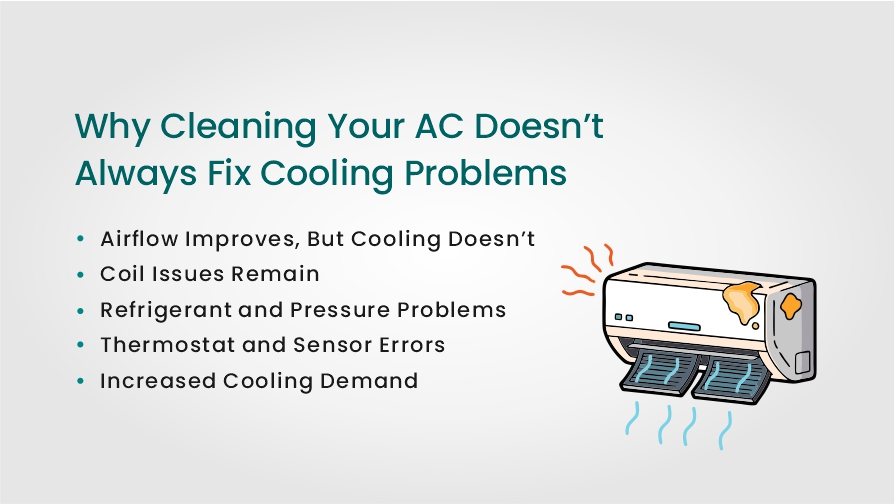 In many homes, cleaning restores only 5 to 10 percent of lost efficiency if the underlying issue lies elsewhere. When cooling problems persist after cleaning, it usually means the system has a mechanical, capacity, or control-related limitation that cleaning alone cannot fix.