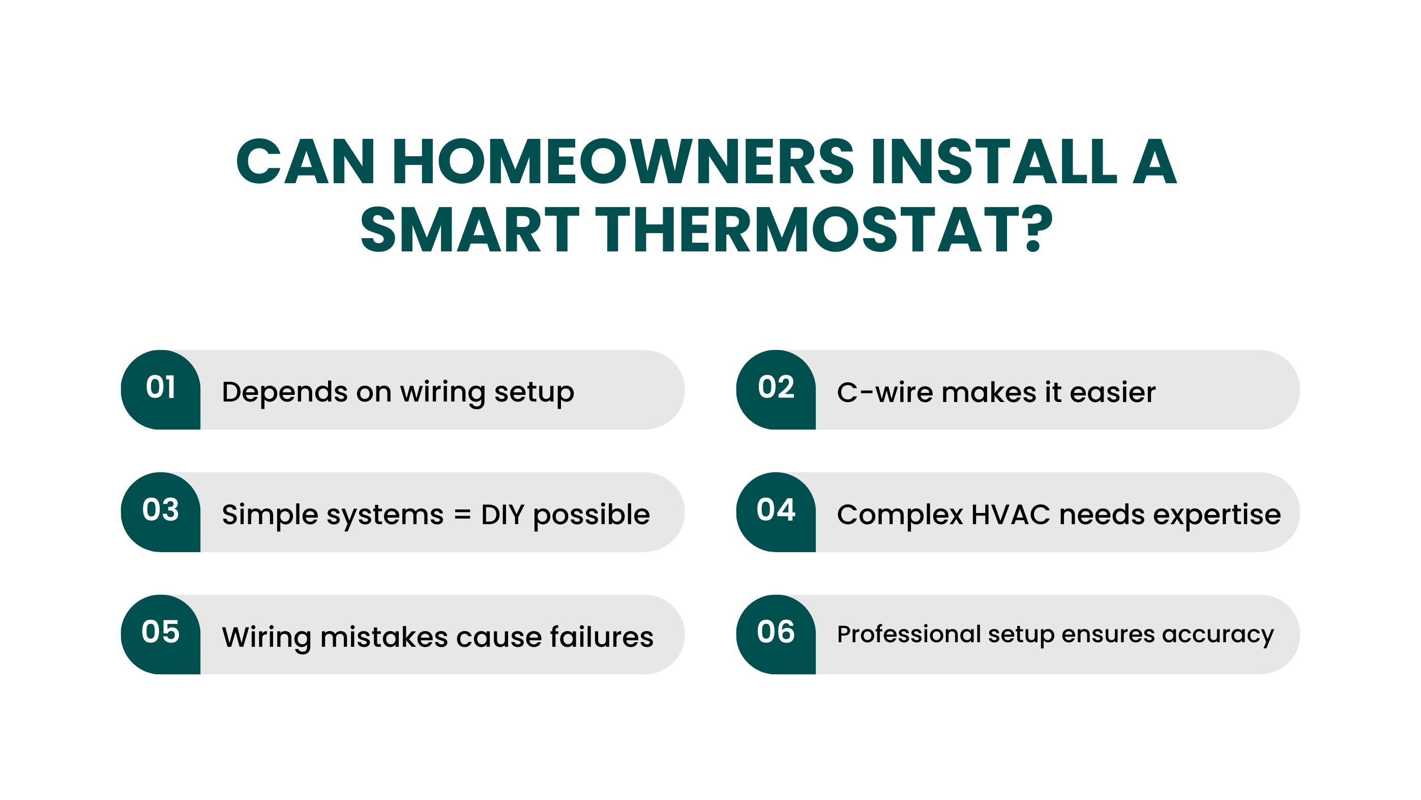 Homeowners who are comfortable identifying HVAC wiring and following manufacturer instructions may complete installation successfully in these limited scenarios.