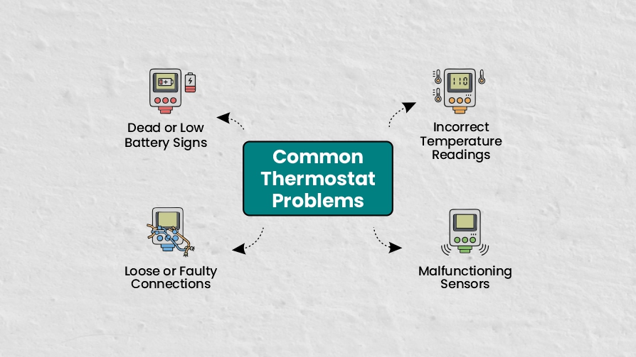 Thermostat issues can range from simple battery problems to more complex sensor or wiring malfunctions. Understanding the root causes of these problems can help you fix them quickly and avoid further disruptions in your heating or cooling system. Here are some common thermostat problems that homeowners often face: