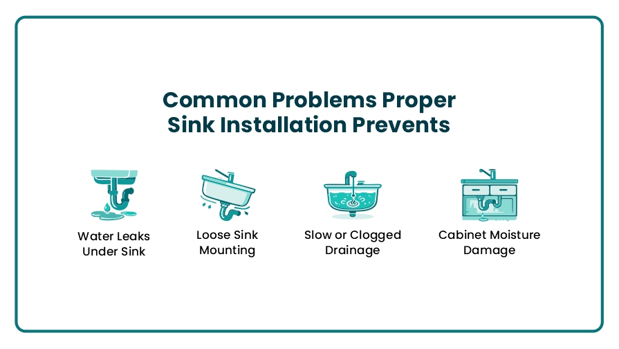 If a sink is not secured properly, it can shift or pull away from the countertop. Loose mounting weakens seals and increases the risk of leaks. Correct installation keeps the sink stable during daily use.