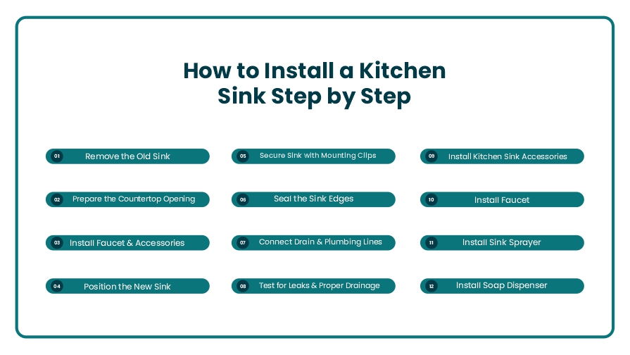 Installing a kitchen sink involves more than simply placing it into the countertop. A complete kitchen sink installation follows a step-by-step process that includes sink removal, surface preparation, accurate positioning, secure mounting, plumbing connections, and leak testing. Skipping or misordering steps can lead to drainage issues, leaks, cabinet damage, or premature sink failure.