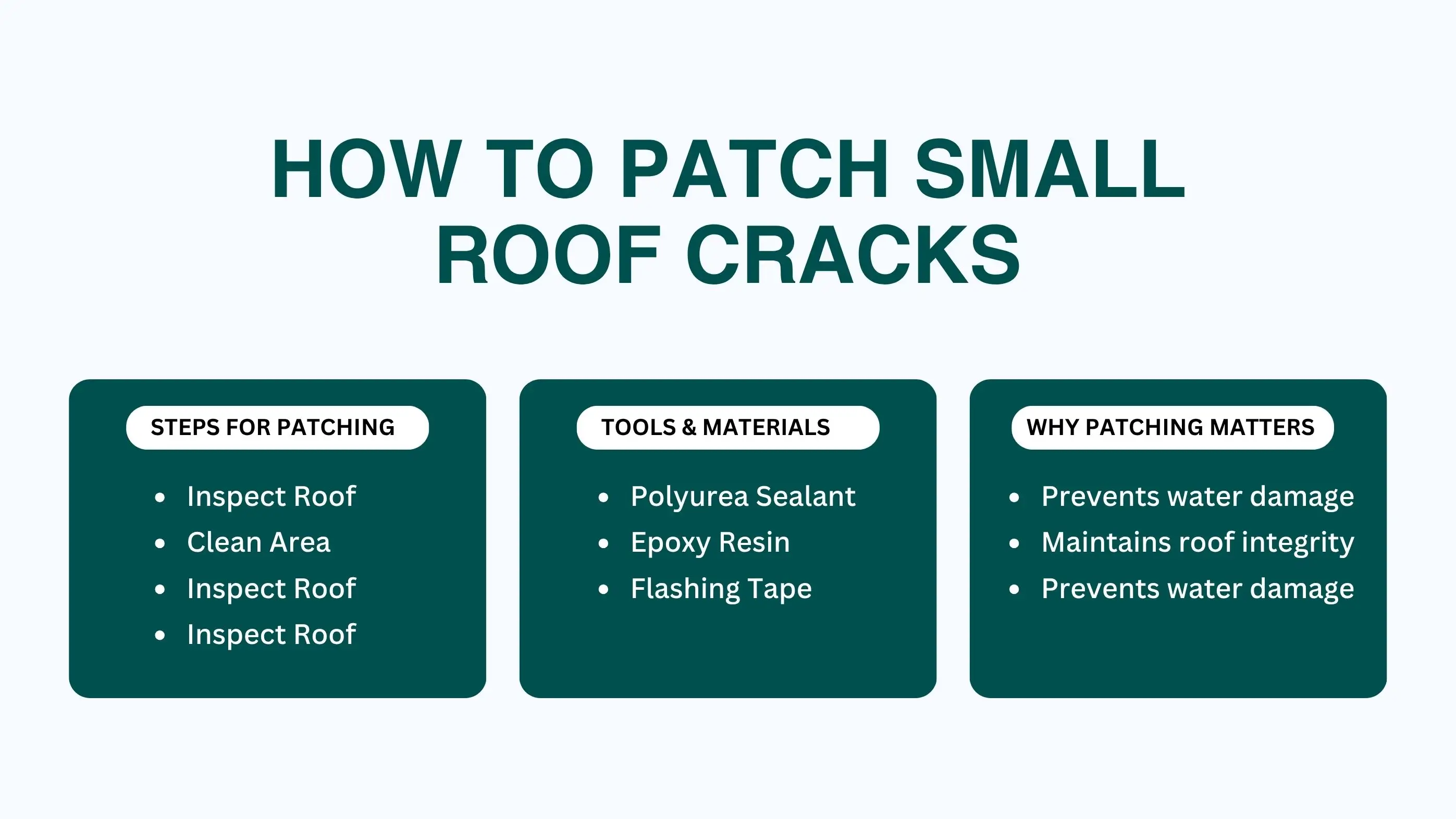 The process of patching small roof cracks involves a few simple but important steps to ensure the repair is strong and leak-proof. By following these steps carefully, you can protect your roof from further damage and extend its lifespan.