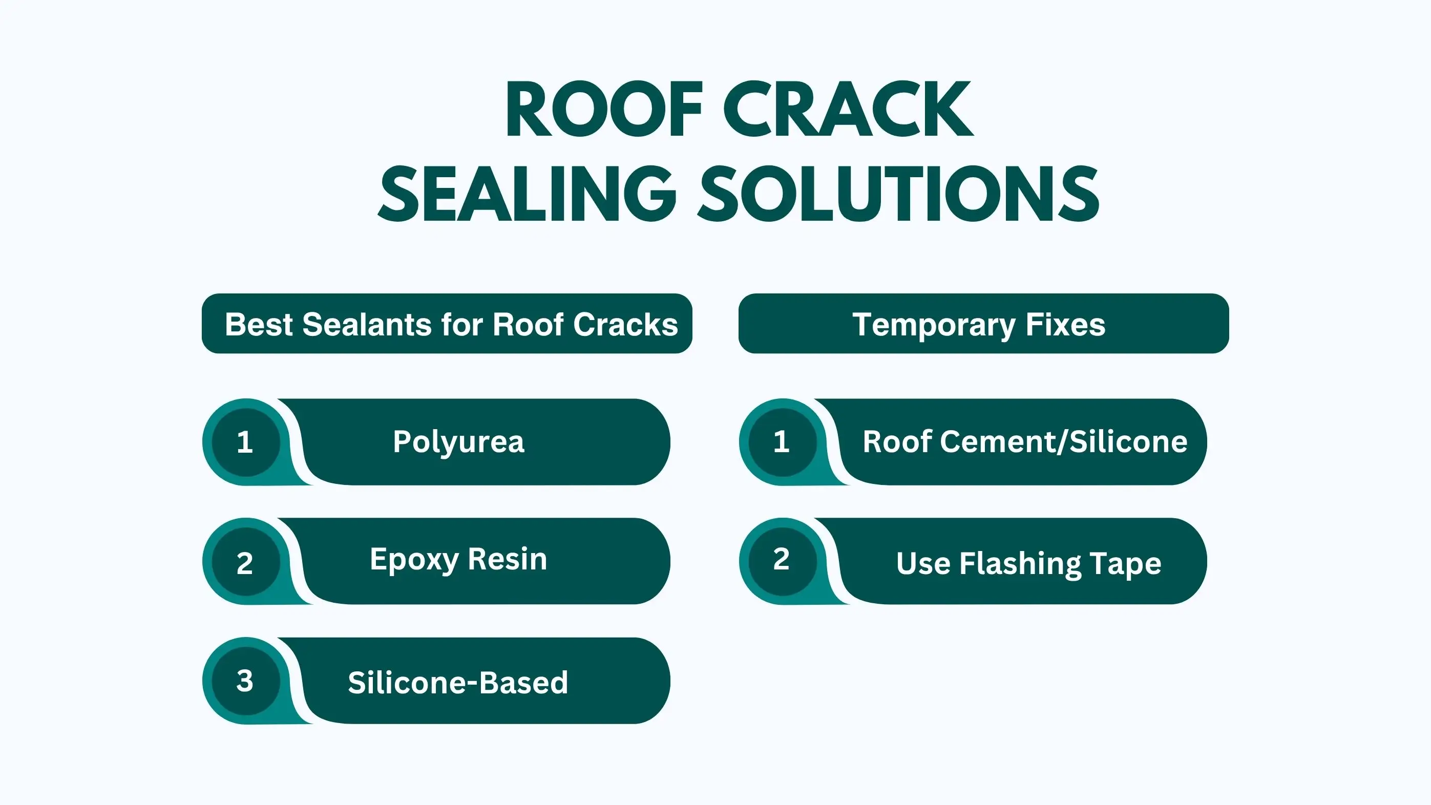 Polyurea sealant is great for long-lasting repairs. It’s flexible, weather-resistant, and can handle temperature changes without cracking again.