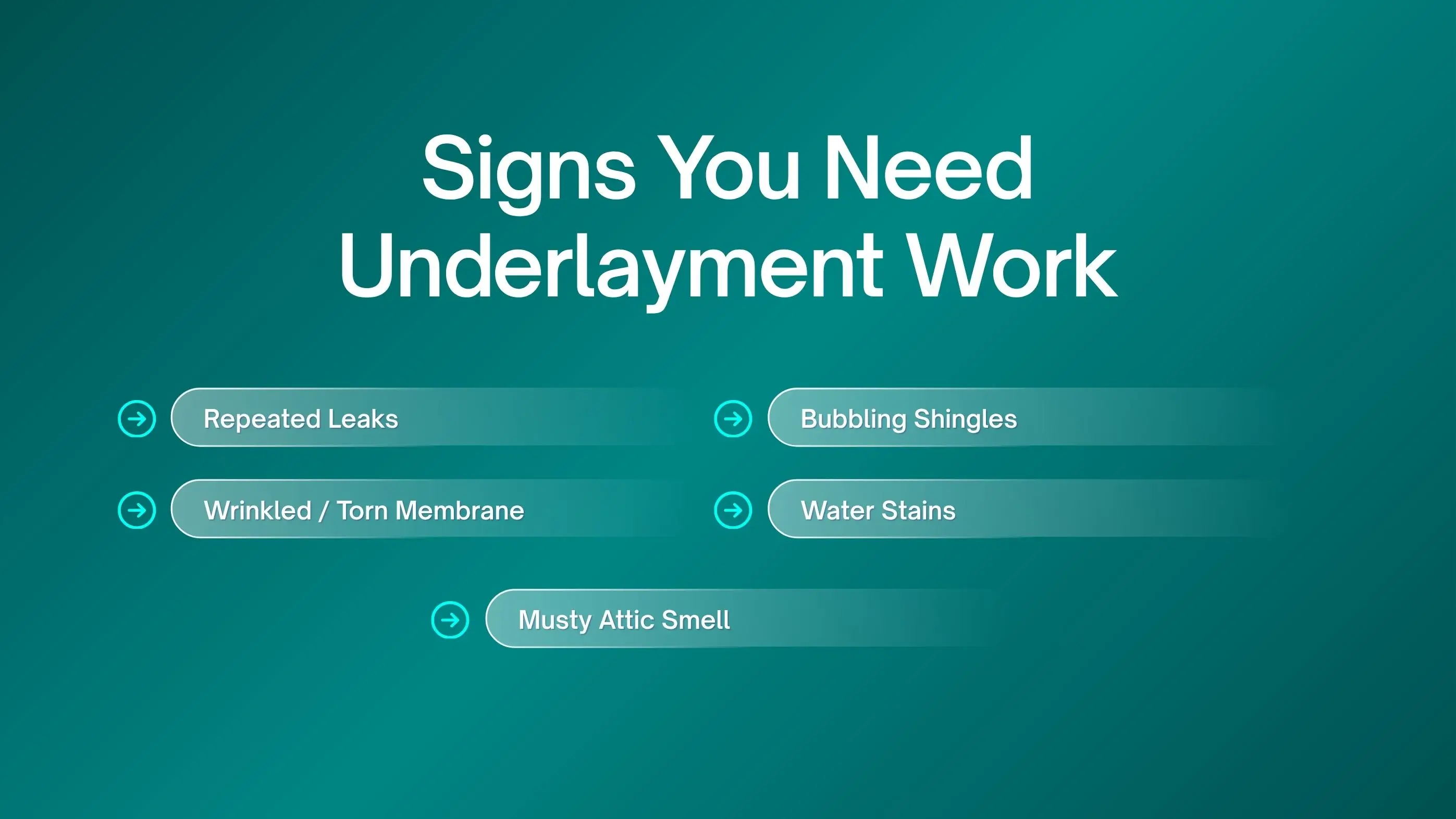 Warning signs that you need roof underlay repair include: