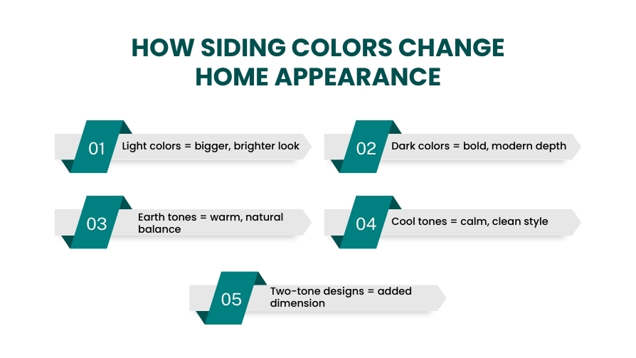 Siding color can greatly impact the way a home is perceived, from its size and shape to its overall style. Different colors create varying impressions, making the home feel larger, bolder, calmer, or more welcoming. Understanding how color affects your home’s aesthetic helps you choose a shade that complements your personal style and the architectural design of your property.