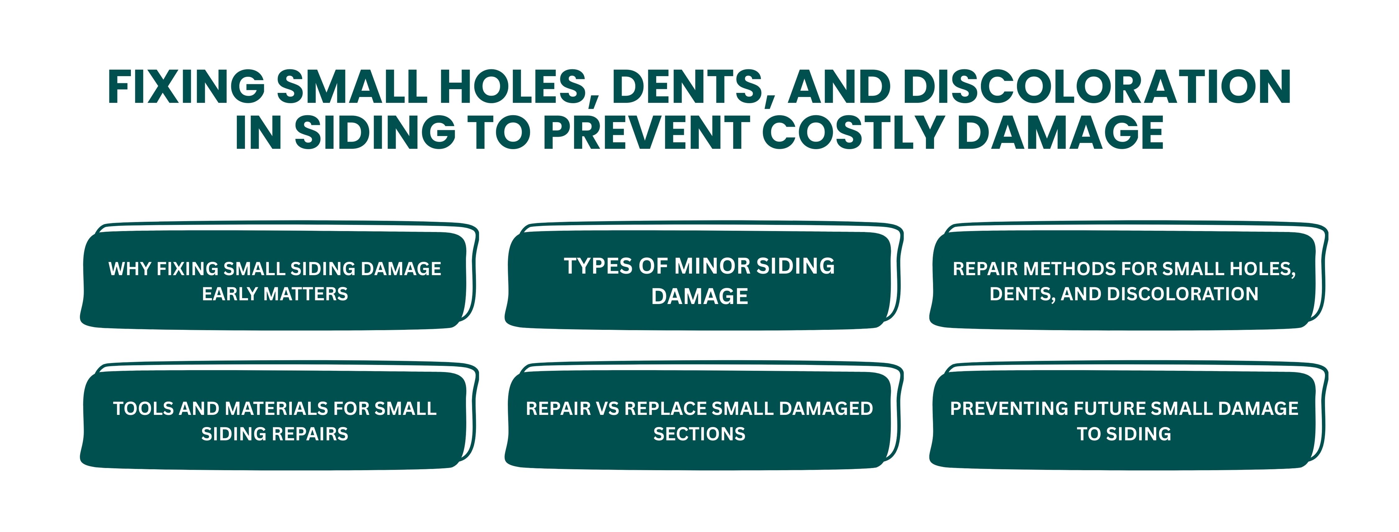 Addressing small siding issues such as holes, dents, and discoloration early can prevent more serious and expensive repairs down the line. Understanding the costs for different repair types, labor, and materials helps homeowners make informed decisions about when to repair or replace damaged siding. Regular maintenance and timely repairs can extend the lifespan of your siding, save you money, and protect your home from long-term damage.