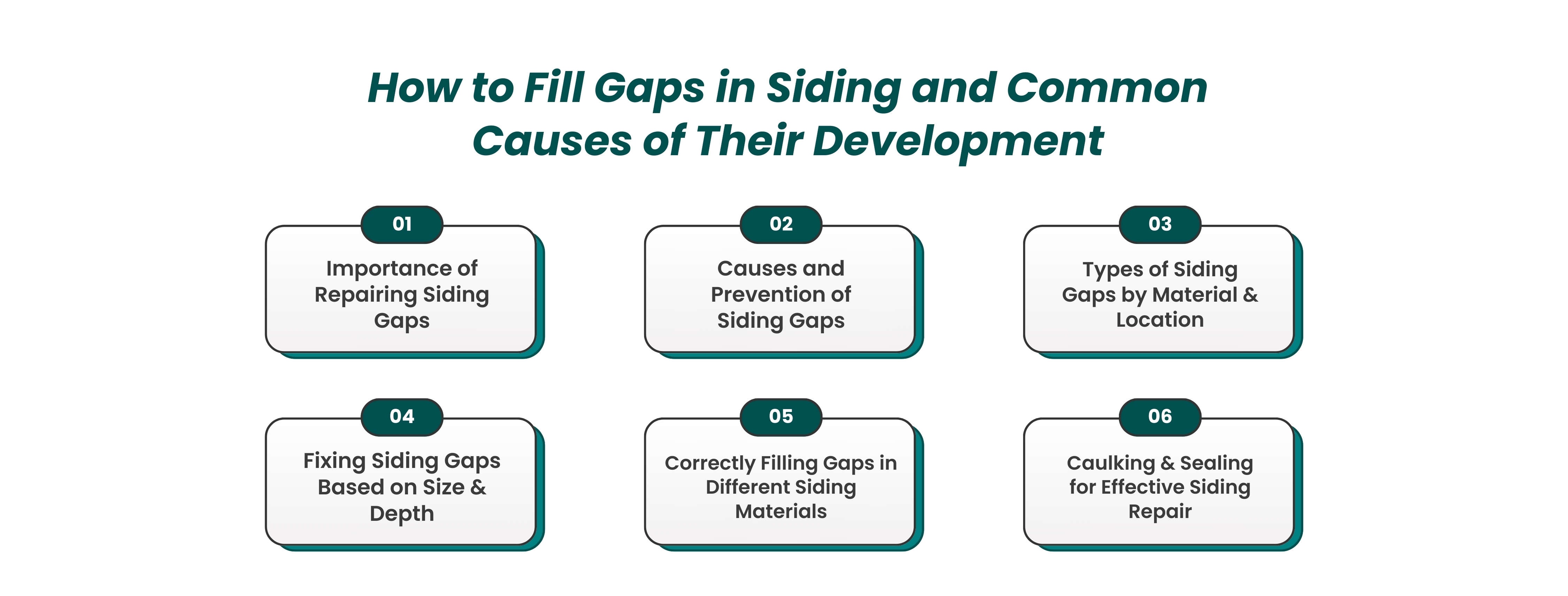 By using these methods, homeowners can effectively address different types of siding gaps based on their size and depth, extending the lifespan of their siding and preventing long-term damage. Regular maintenance and timely repairs are essential to keeping your home protected from the elements.