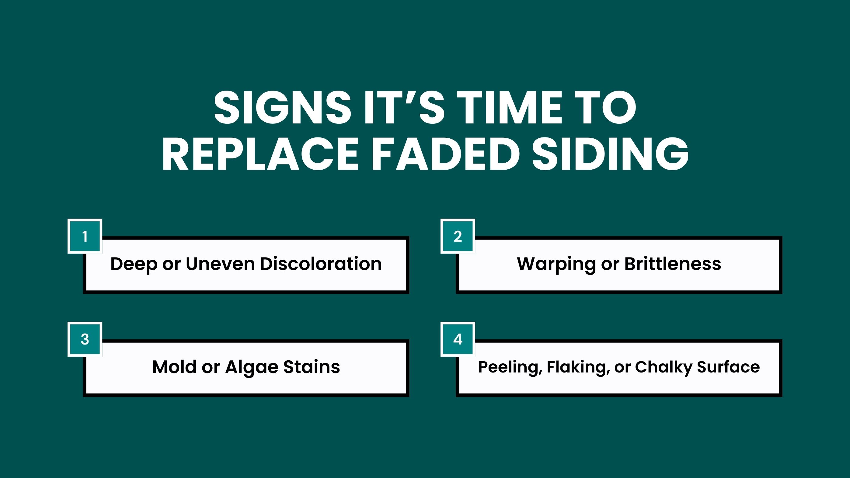 Fading often reveals deeper wear beneath the surface. As siding loses color, it usually also loses strength, moisture resistance, and insulating performance. When multiple warning signs appear together, replacement becomes more cost-effective than ongoing maintenance.