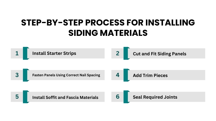 A clear installation process helps homeowners understand how siding is placed, aligned, and secured for long-term performance. Each step builds on the previous one to create a durable, weather-protected exterior.
