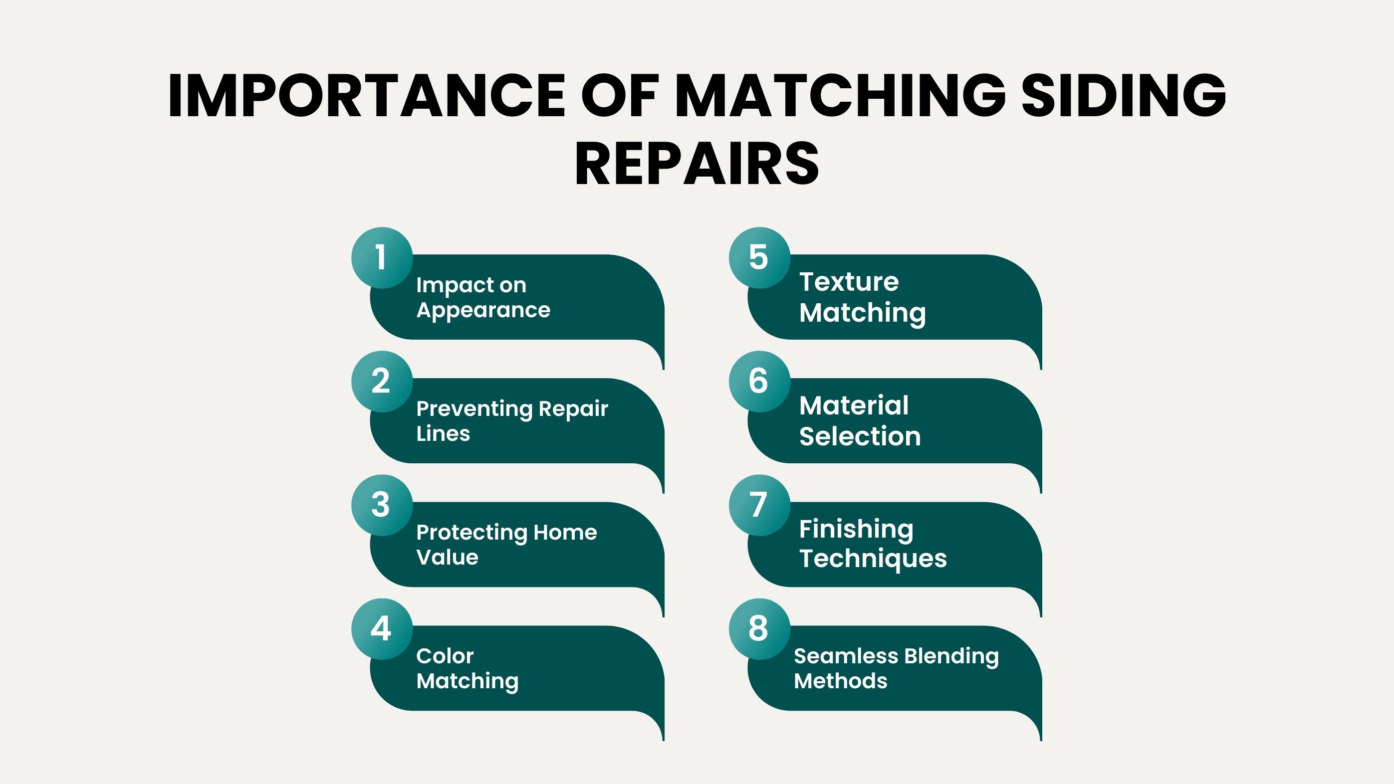 Consistent siding repairs help preserve your home's value. Mismatched repairs can make the property appear neglected, lowering its curb appeal and potential resale value. A well-matched repair maintains both the visual integrity and long-term worth of your home.