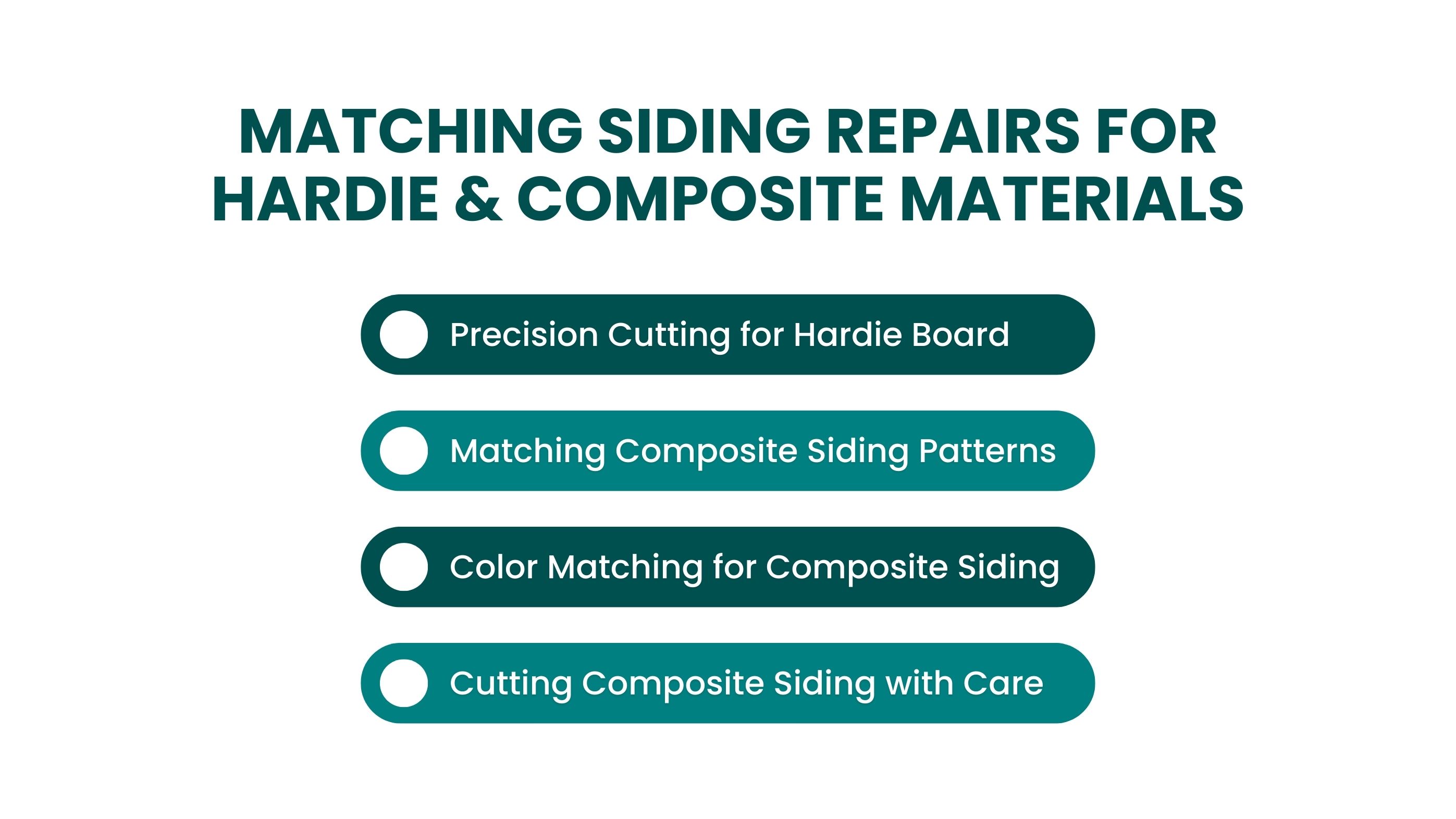 Selecting the right material for repairs is just as important as matching color, texture, and style. Different materials expand and contract differently, so it's essential to use materials that will react similarly to the existing siding.