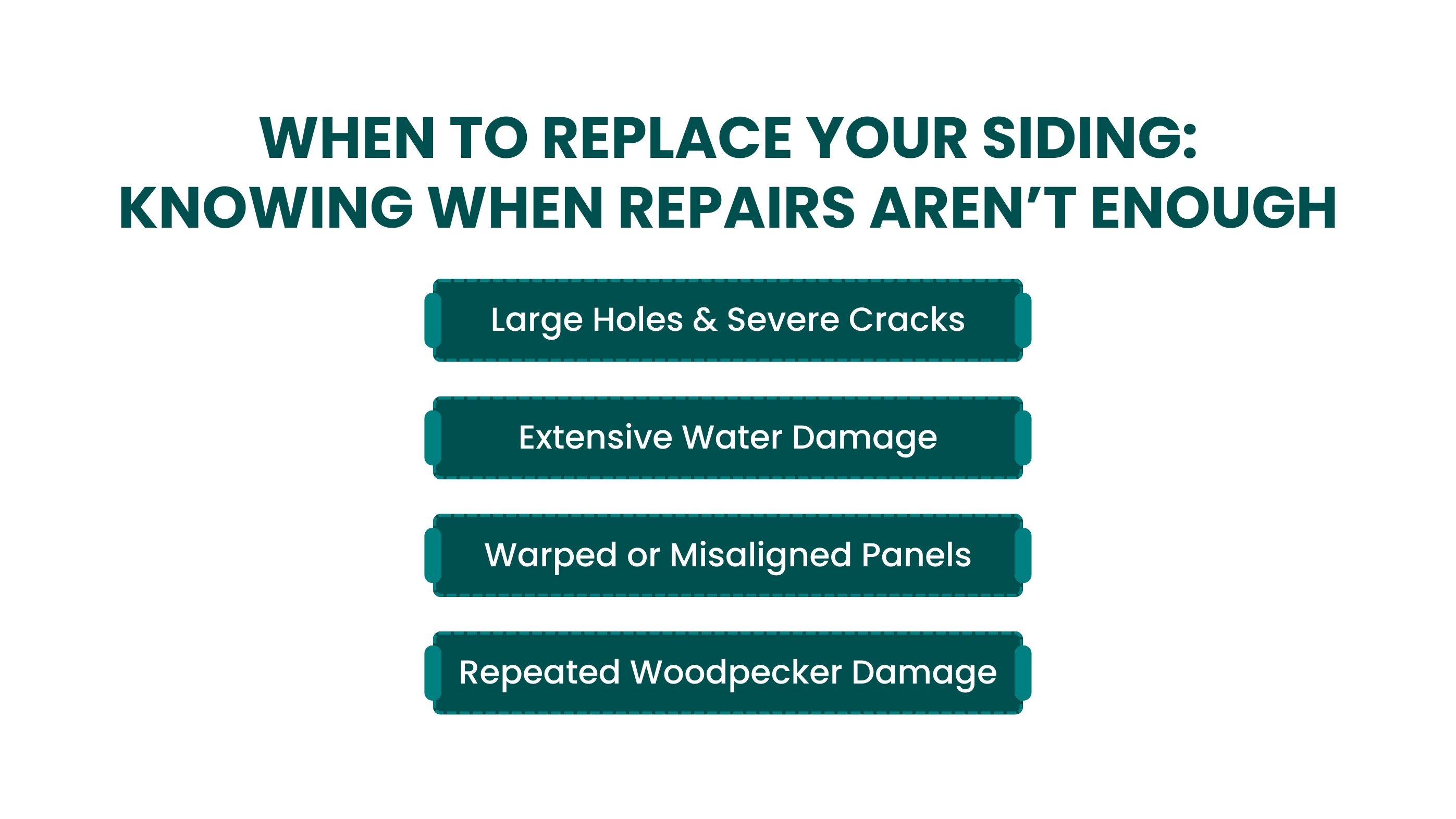 Water infiltration behind the siding is one of the most serious issues, as it can cause rot, mold, and structural damage. Addressing water damage early is critical to prevent extensive repairs down the road.