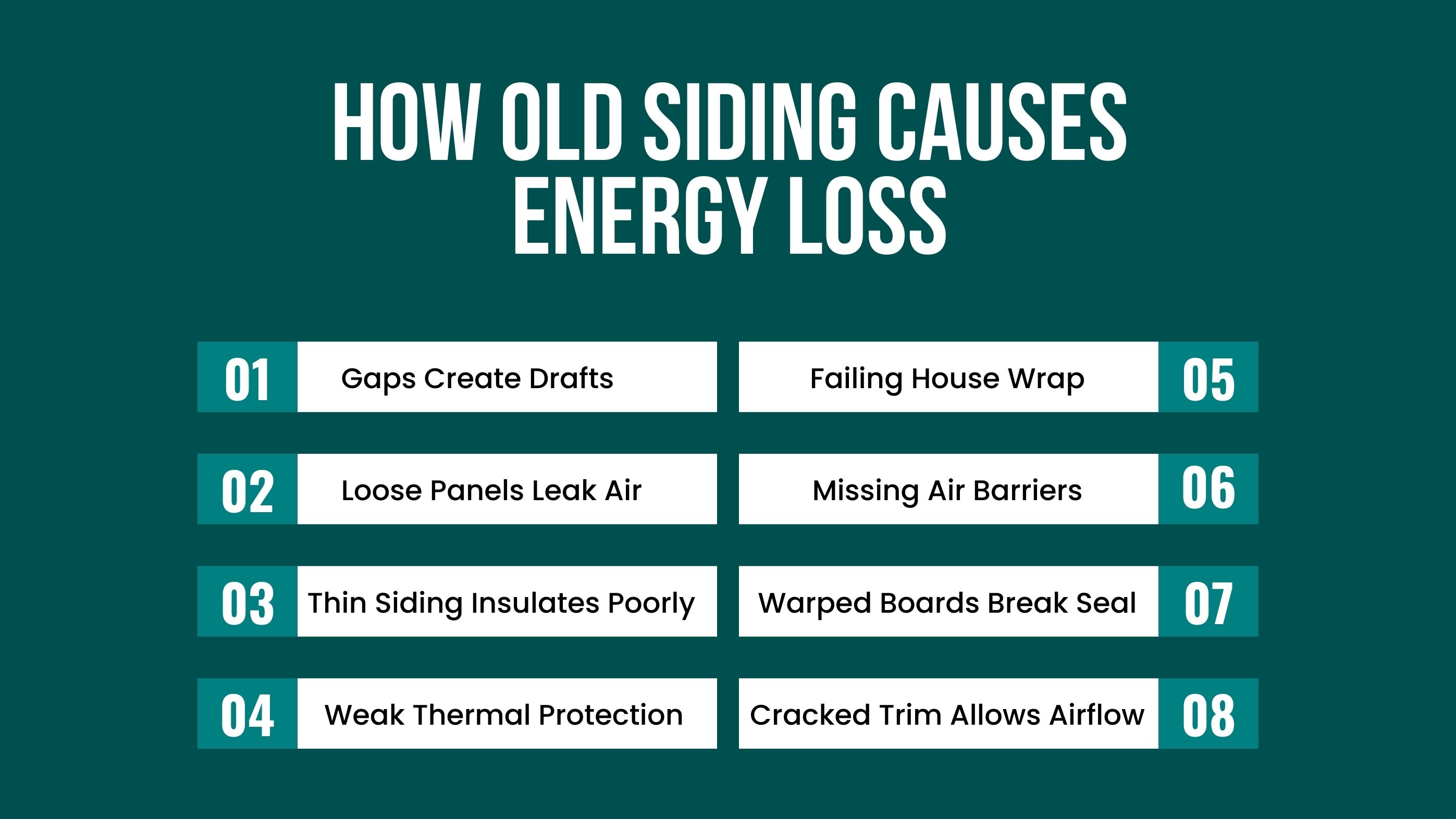 Old siding naturally weakens over time, allowing air to pass through cracks, gaps, and thin panels that no longer protect the home effectively. When siding becomes loose, warped, or brittle, outdoor air moves into the wall cavity while conditioned indoor air escapes. This forces the HVAC system to work harder, leading to higher utility bills and rooms that never stay at a consistent temperature.