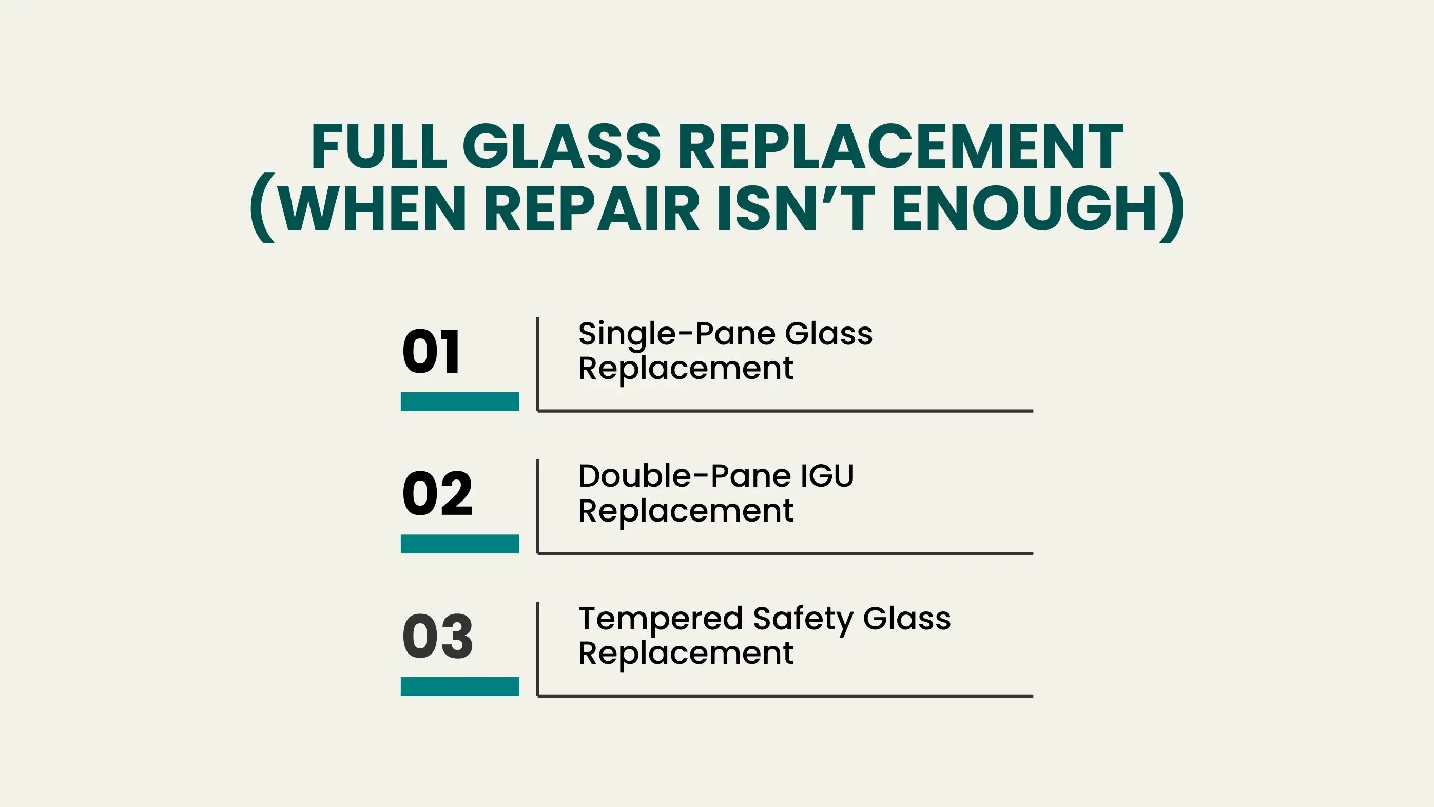 Any repair that involves tools, glazing materials, or full glass replacement must be handled by a trained expert. These tasks involve safety risks, sealing skill, and precise installation: