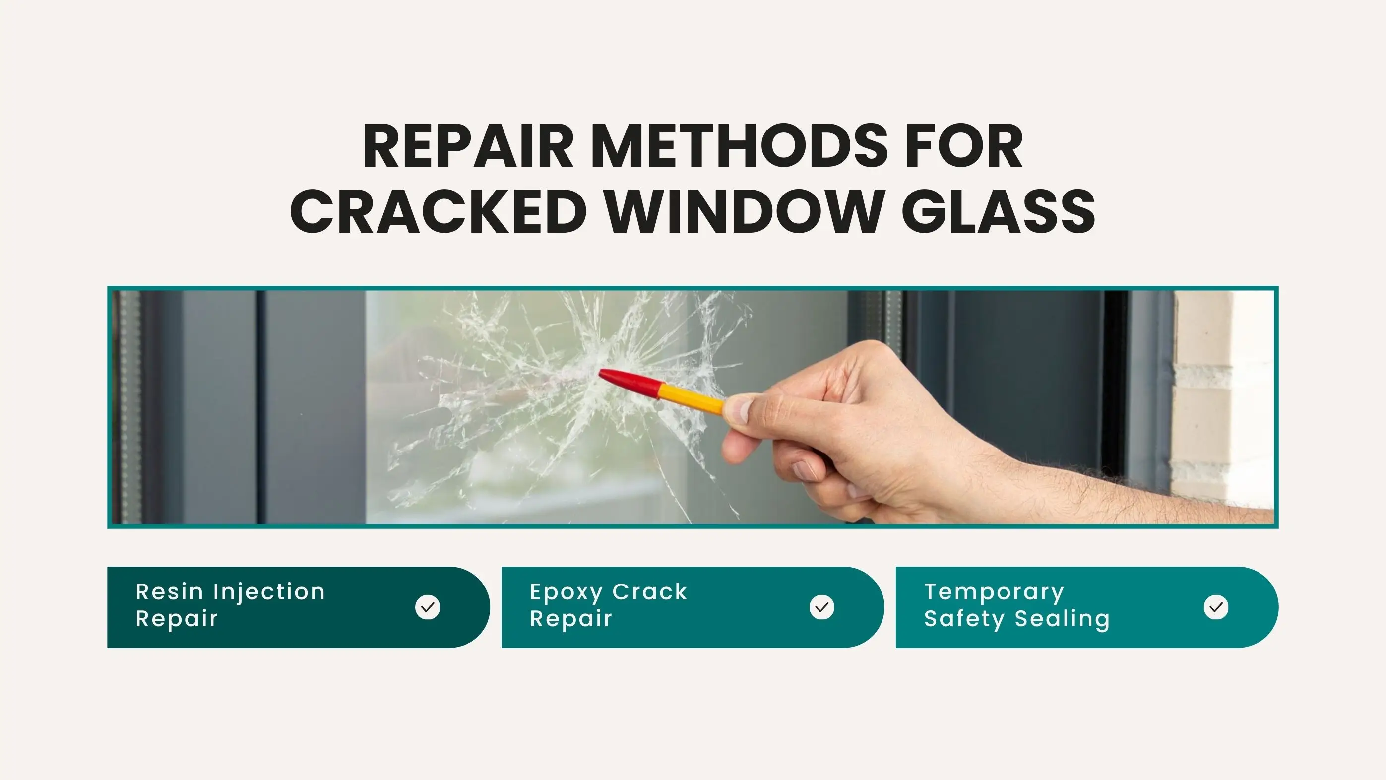 Repair works only for very small, shallow cracks that haven’t spread and are limited to single-pane glass. These tiny lines can be sealed for short-term stability if the glass is still firm and the frame is solid.